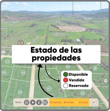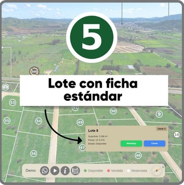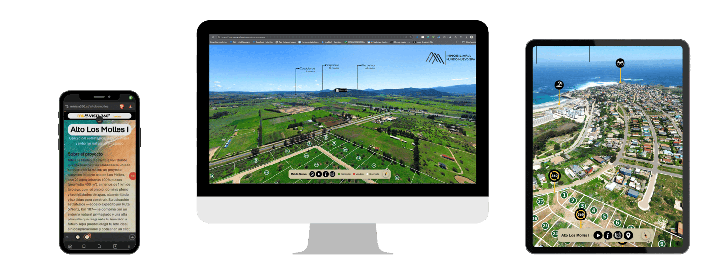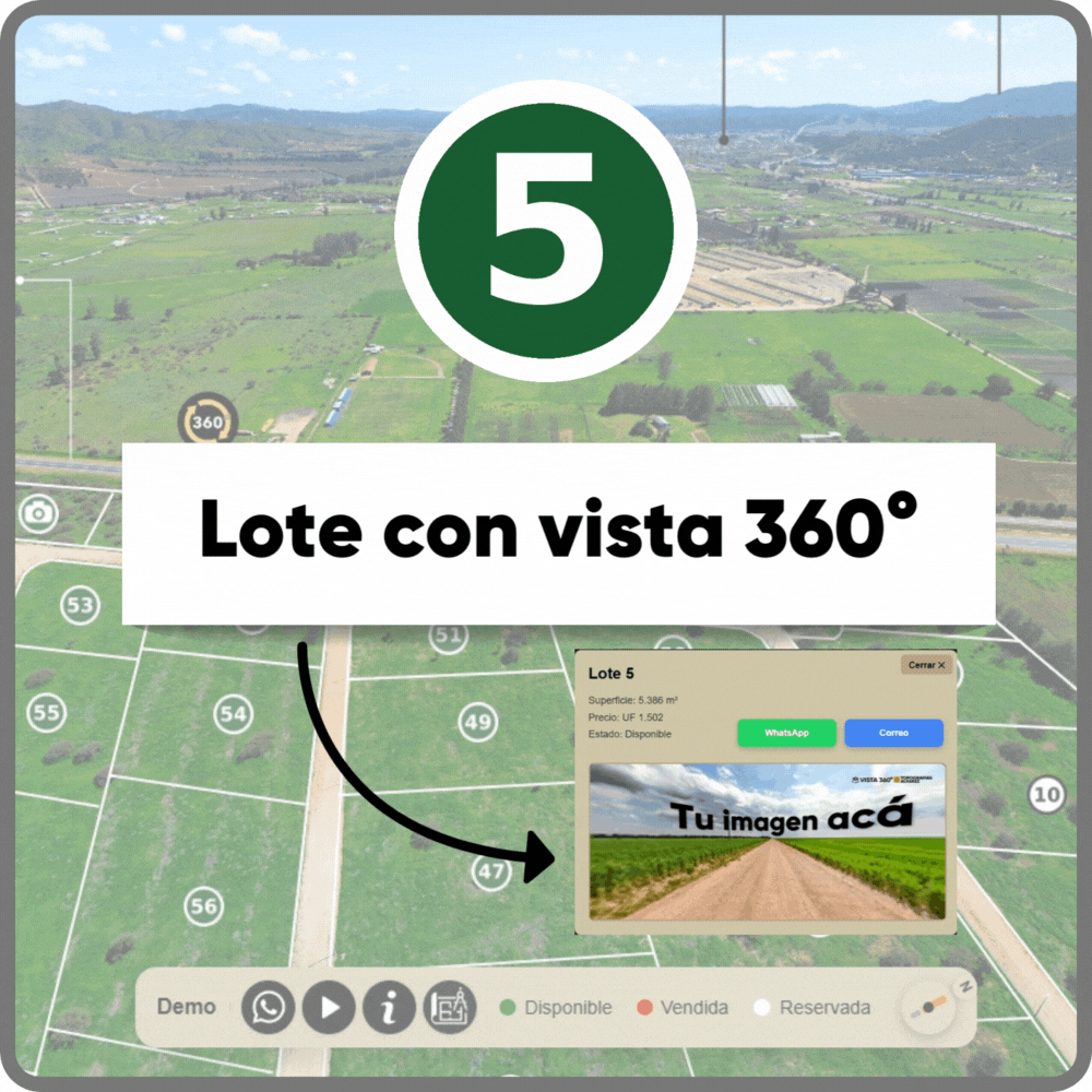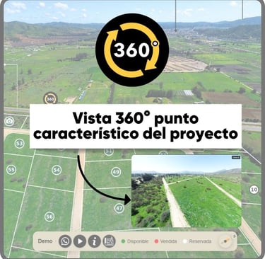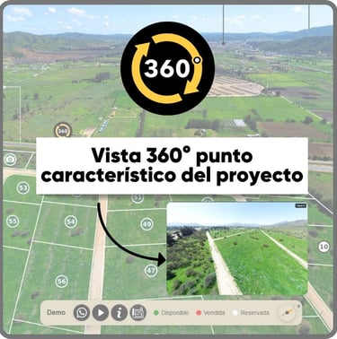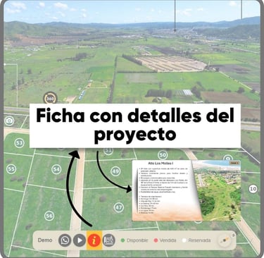 Recorridos 360°, estados y precios por lote, fotos, videos y documentos descargables en una sola experiencia interactiva. Comparte un solo link y convierte el interés en visitas reales agendadas.