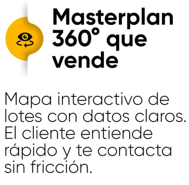 Accede a una solución integral que reúne visualización, información comercial y gestión de lotes en una plataforma interactiva. Un solo link para mostrar tu proyecto, responder consultas y facilitar la toma de decisiones desde el primer contacto.