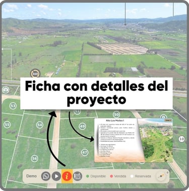 Recibe un enlace único para compartir con tus clientes. Permite explorar el proyecto, comparar lotes y acceder a la información clave, facilitando la toma de decisiones y la agenda de visitas en terreno.