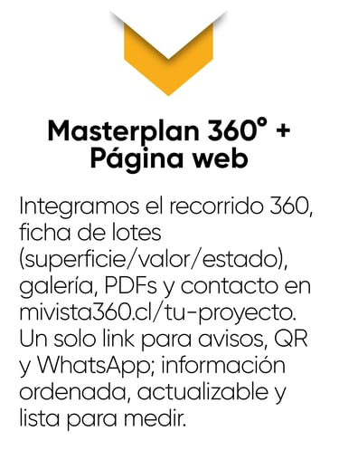 Cuéntanos sobre tu proyecto: ubicación, tipo de desarrollo y etapa comercial. Definimos el alcance del Masterplan 360°, los lotes, la información a mostrar y los objetivos de venta.